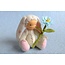 Dit konijntje met bloemetje is een allerliefst knuffeltje met beweegbare armen en benen. Hij zal zijn plekje veroveren in je hart. Meneer Beertje is zijn beste vriend en hij zal later dit jaar uitkomen. Zittend zijn ze 7 cm hoog.