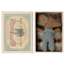 Deze lieve baby muis gaat 's avonds lekker slapen en wordt 's ochtends weer vrolijk wakker. Hij heeft dan ook een heerlijk bedje in zijn eigen lucifersdoosje.