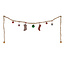 Breng je poppenhuis of kamer in kerstsferen met deze mooie gouden kerstslinger! Aan de slinger hangen 7 handgemaakte ornamenten: trommels, kerstsokken en kerstballen.