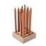 De potloden zijn altijd bij de hand wanneer ze in dit blok zitten. Daarbij staan ze vast, zodat er geen potloodstiften meer breken doordat ze vallen. In de zorgvuldig gemaakte blokken van afgelakt beukenhout passen normale kleurpotloden.